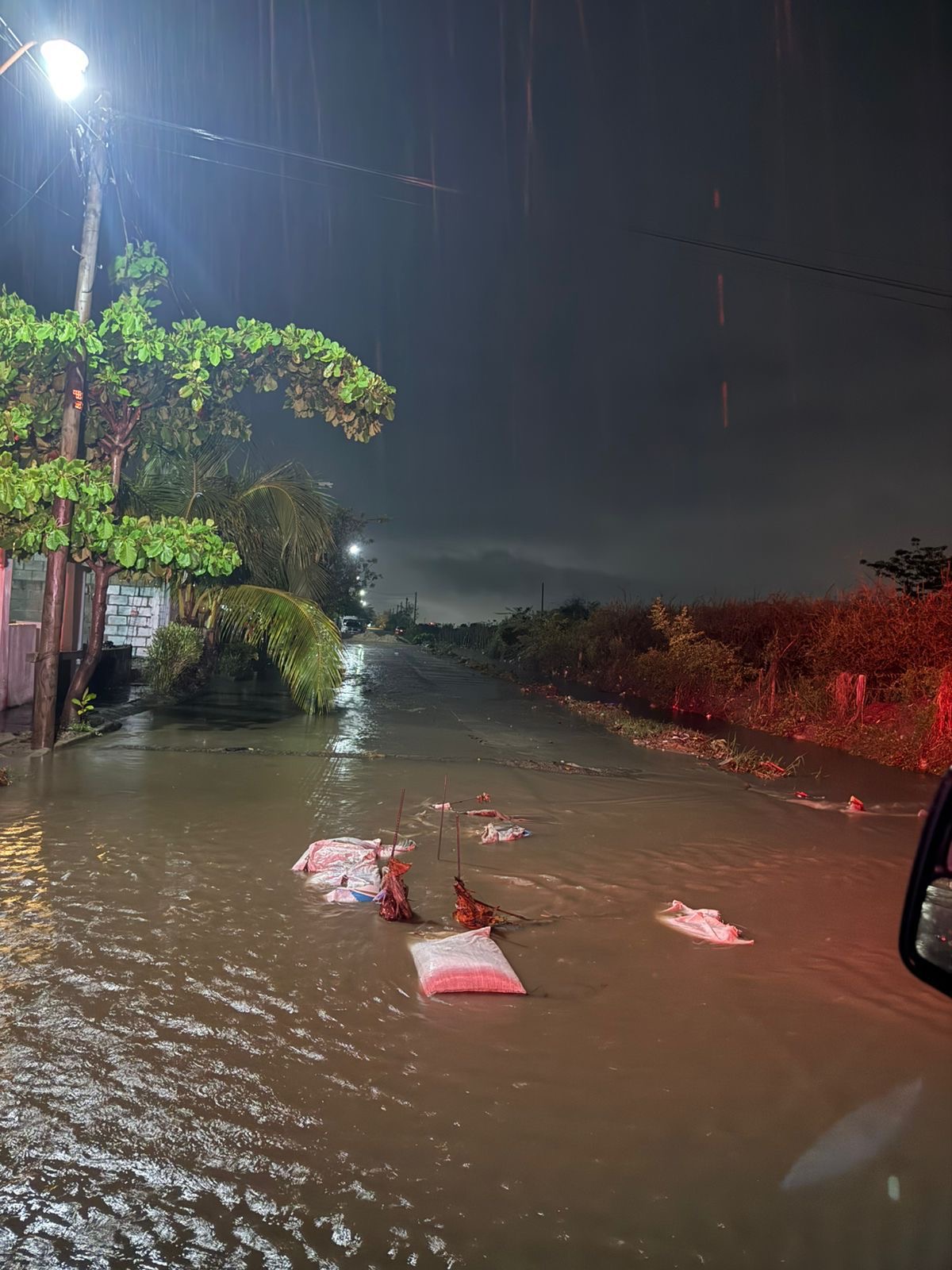 -Lateral de Telmex en Bucerías: Inundación causada por una alcantarilla obstruida por basura.